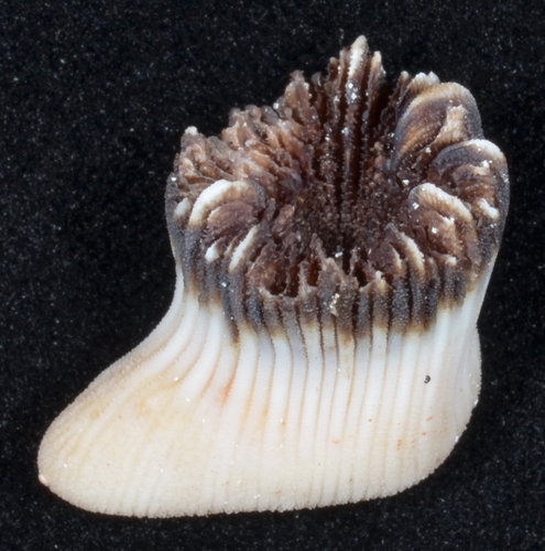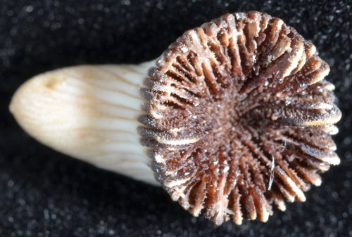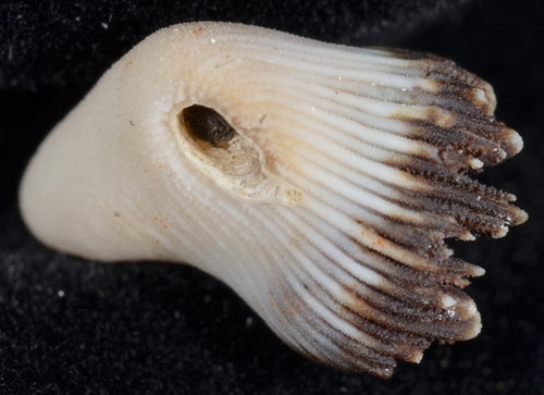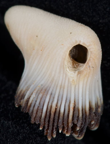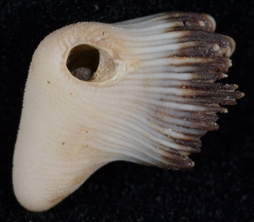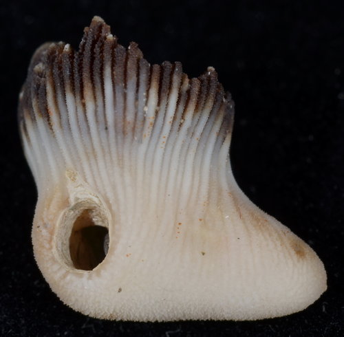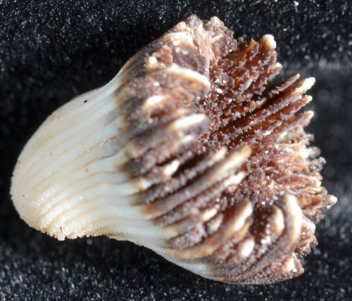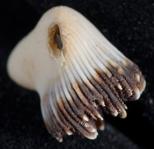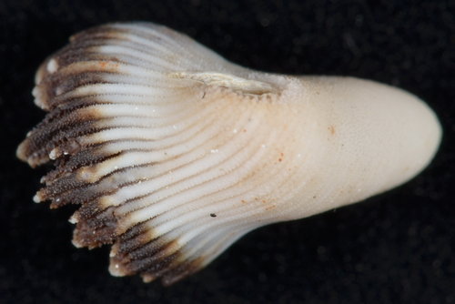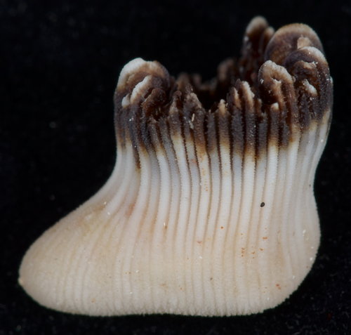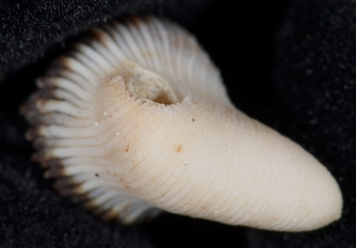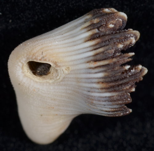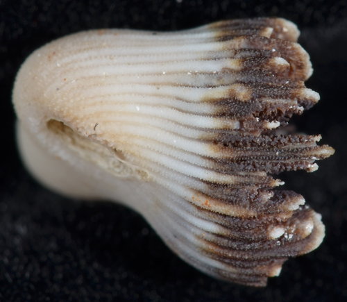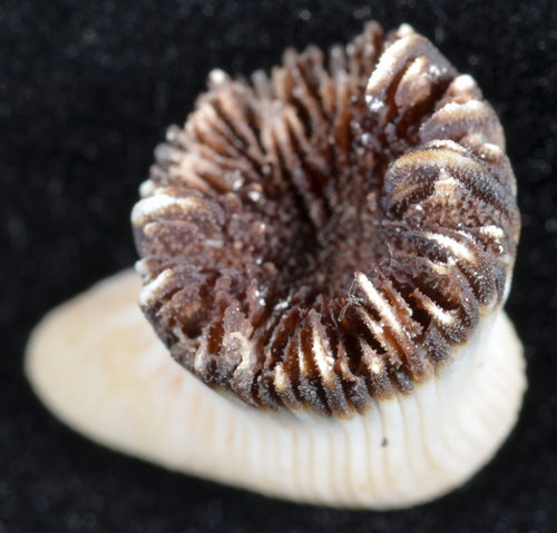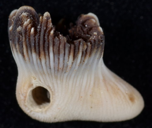 Description: 11.26x 10.29mm , They have a commensal relationship with a sipunculid worm (Aspidosiphon corallicola), 此漂亮的單體珊瑚極像「短靴」,與環節動物的星蟲類Aspiedosiphon有共生的關係,珊瑚體底部的小孔即為星蟲寄生於螺殼的殼口的開孔, taken by trawlboat at Penghu Islands (澎湖), Taiwan. 2009/10/10