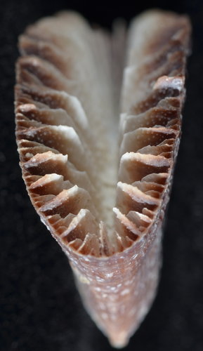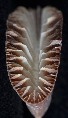 Description: 30.01x 11.43mm (calicular diameter), GCD:LCD =2.63, corallum tall:20.54mm, thecal edges angle:50°, thecal faces angle:23°, basal scar:13.44x 4.39mm , taken from Penghu Islands (澎湖), Taiwan. 2011/10/08