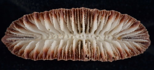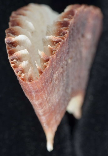 Description: 29.87x 10.42mm (calicular diameter), GCD:LCD =2.87, corallum tall:20.11mm, thecal edges angle:80°, thecal faces angle:23°, basal scar:11.62x 4.98mm , taken from Taiwan Strait near east side of Penghu Islands (澎湖). 2012/10