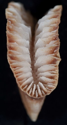 Description: 31.89x 11.67mm (calicular diameter), GCD:LCD =2.73, corallum tall:27.04mm, thecal edges angle:77°, thecal faces angle:20°, pedicel diameter:3.02x 2.54mm , taken from Taiwan Strait near east side of Penghu Islands (澎湖). 2012/10