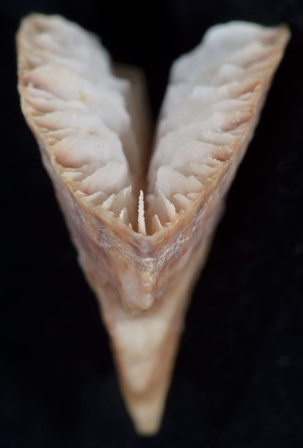 Description: 39.60x 17.04mm (calicular diameter), GCD:LCD =2.26, corallum tall:27.81mm, thecal edges angle:110°, thecal faces angle:40°, pedicel diameter:3.76x5.60x 3.12mm , taken from Taiwan Strait near east side of Penghu Islands (澎湖). 2012/10