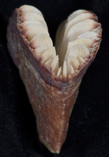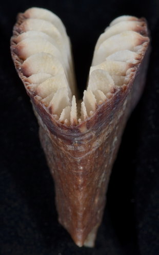 Description: 43.99x 18.40mm (calicular diameter), GCD:LCD =2.39, corallum tall:32.54mm, thecal edges angle:90°, thecal faces angle:32°, basal scar:10.86x 5.85mm , taken from Taiwan Strait near east side of Penghu Islands (澎湖). 2012/10