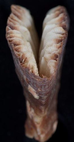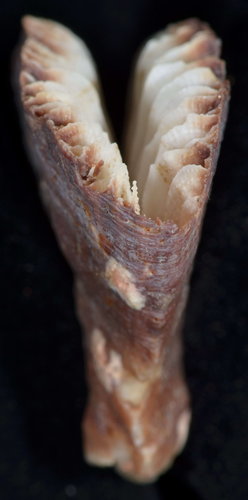 Description: 44.71x 14.12mm (calicular diameter), GCD:LCD =3.17, corallum tall:33.20mm, thecal edges angle:85°, thecal faces angle:25°, basal scar:7.09x 3.98mm , taken from Taiwan Strait near east side of Penghu Islands (澎湖). 2012/10