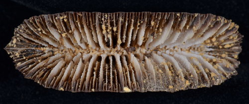 Description: 48.96x 16.09mm (calicular diameter), GCD:LCD =3.04, corallum tall:33.35mm, thecal edges angle:90°, thecal faces angle:30°, basal scar:14.75x 3.05mm , taken by trawlboat at Penghu Islands (澎湖), Taiwan. 2009/10/01