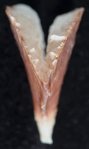 Description: 23.03x 9.80mm (calicular diameter), GCD:LCD =2.35, corallum tall:17.87mm, thecal edges angle:130°, thecal faces angle:23°, pedicel diameter:5.19x5.32x 2.59mm , taken from Taiwan Strait near east side of Penghu Islands (澎湖). 2012/10