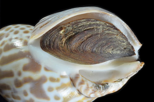 Description: H: 76.83mm , W: 46.83mm , S: 39.59mm , AH: 43.44mm , AW: 24.09mm , AH/H=0.56, W/H=0.6, AW/AH=0.55, w/o. Chip in end of lip. Tralwed at 10~ 20m deep. Ishigawa Prf. , Japan . 2005