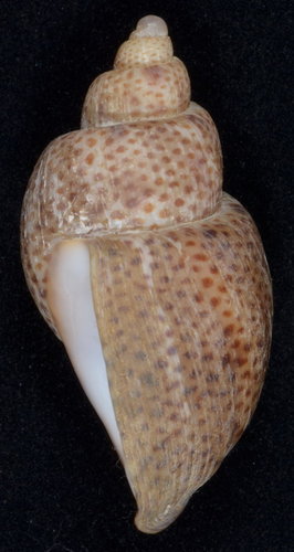 Description: H: 36.24mm , W: 21.55mm , S: 16.71mm , AH: 20.87mm , AW:14.31, AH/H=0.57, W/H=0.59, AW/AH=0.68; W/O, W/P,. South Africa . Jeffreys Bay . Dredged at 67m, 2013/03 .