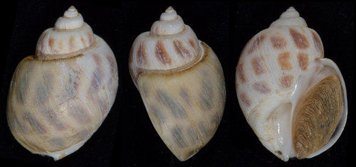 Description: H:30.73mm, W:21.90mm, S:14.77mm, AH:21.45mm, AW:10.76mm, S/H=0.48, AH/H=0.69, W/H=0.71, AW/AH=0.50, Synonyms:B, tessellata, B. maculosa, B. areolata forma austraoceanensis, B. lani