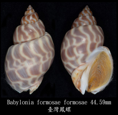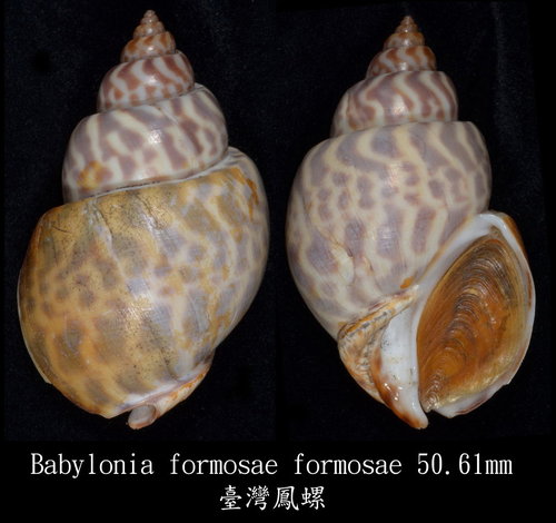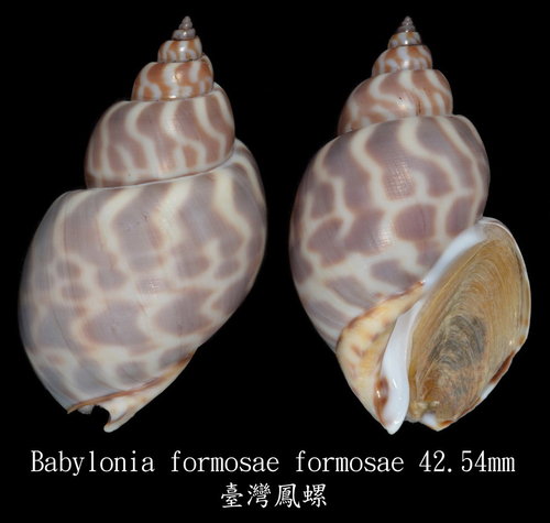 Babylonia formosae (G. B. Sowerby II, 1866),因主產地是台灣(formosa)而命名。然而它卻有兩型,各有不同的斑紋型式、尺寸、產地與盛產季節。