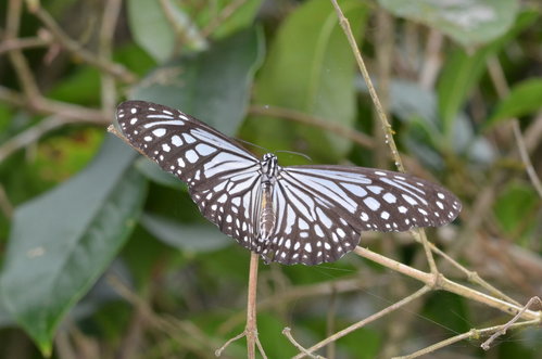 Description: 絹斑蝶(姬小紋青斑蝶;姬小紋淡青斑蝶;小透翅斑蝶;透翅斑蝶) . Found in forest around 500m high Mt. area at Jia Le Village, Jianshi Township, Shinchu Couty, (新竹縣尖石鄉嘉樂村), Northwest Taiwan. 2013/07/21