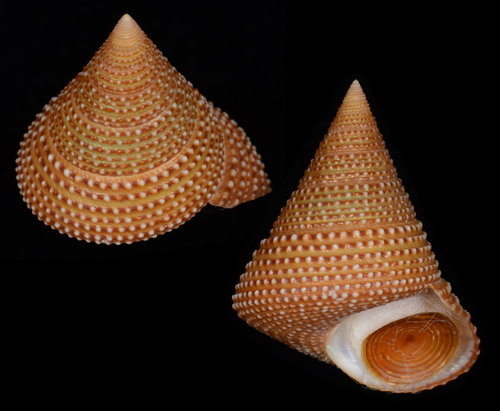 Description: 28.37mm, W/O. 20m on sponge amongst E. radiata seaweed, off Cape Rodney, Northland, New Zealand. November, 1986.