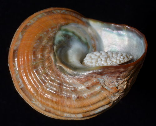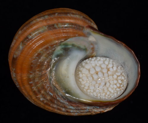 Description: 30.5mm, W/O, BIG and RARE ORANGE! Live in crevice at 6m. East London. South Africa. December, 2012.